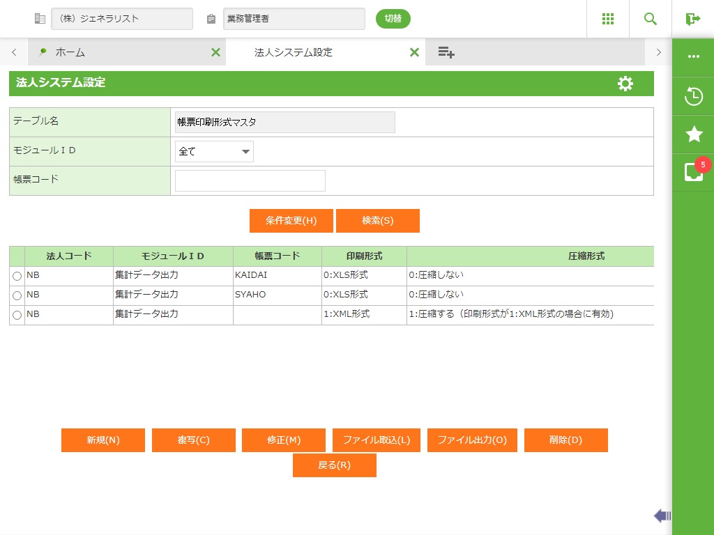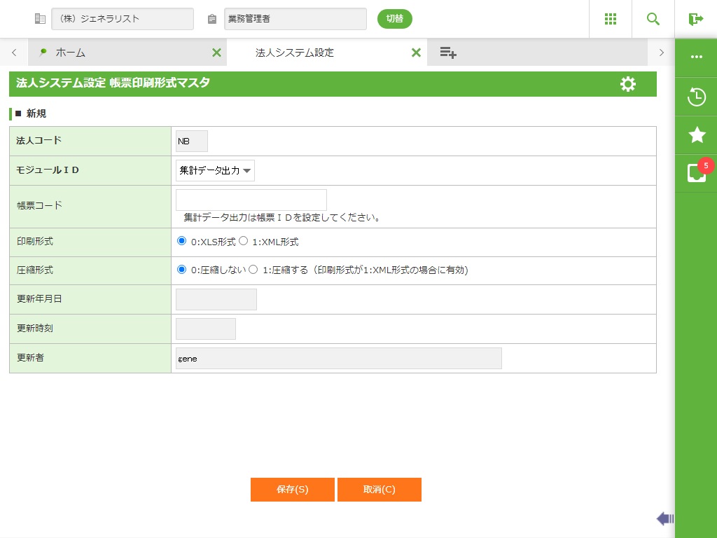 帳票印刷形式マスタを新規登録します。詳細画面が表示されます。 |