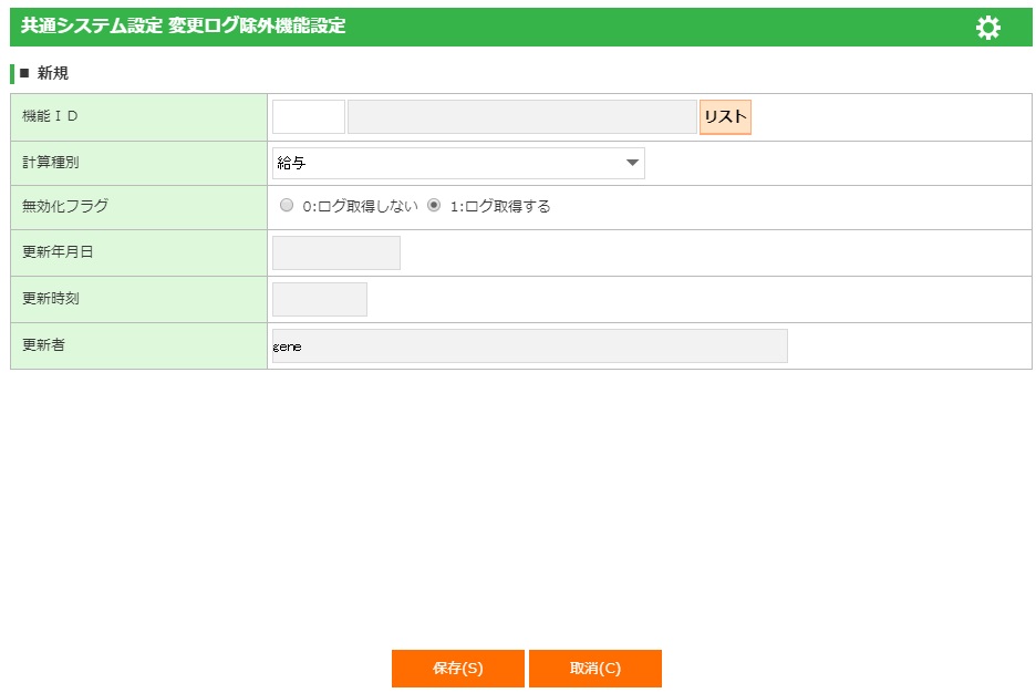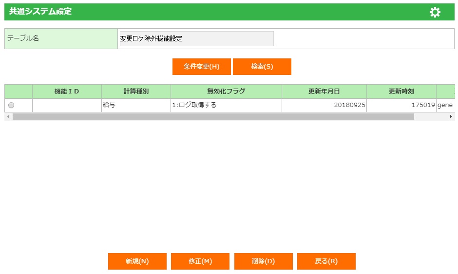 ・変更ログシステム設定の給与計算ログ取得区分を「0:ログ取得しない」と設定した場合は、すべての機能においてログを取得しないため、変更ログ除外機能設定を設定する必要はありません。