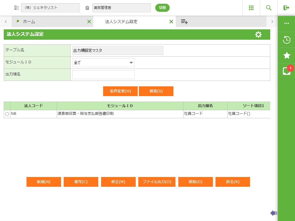 出力順設定マスタを新規登録します。詳細画面が表示されます。 |