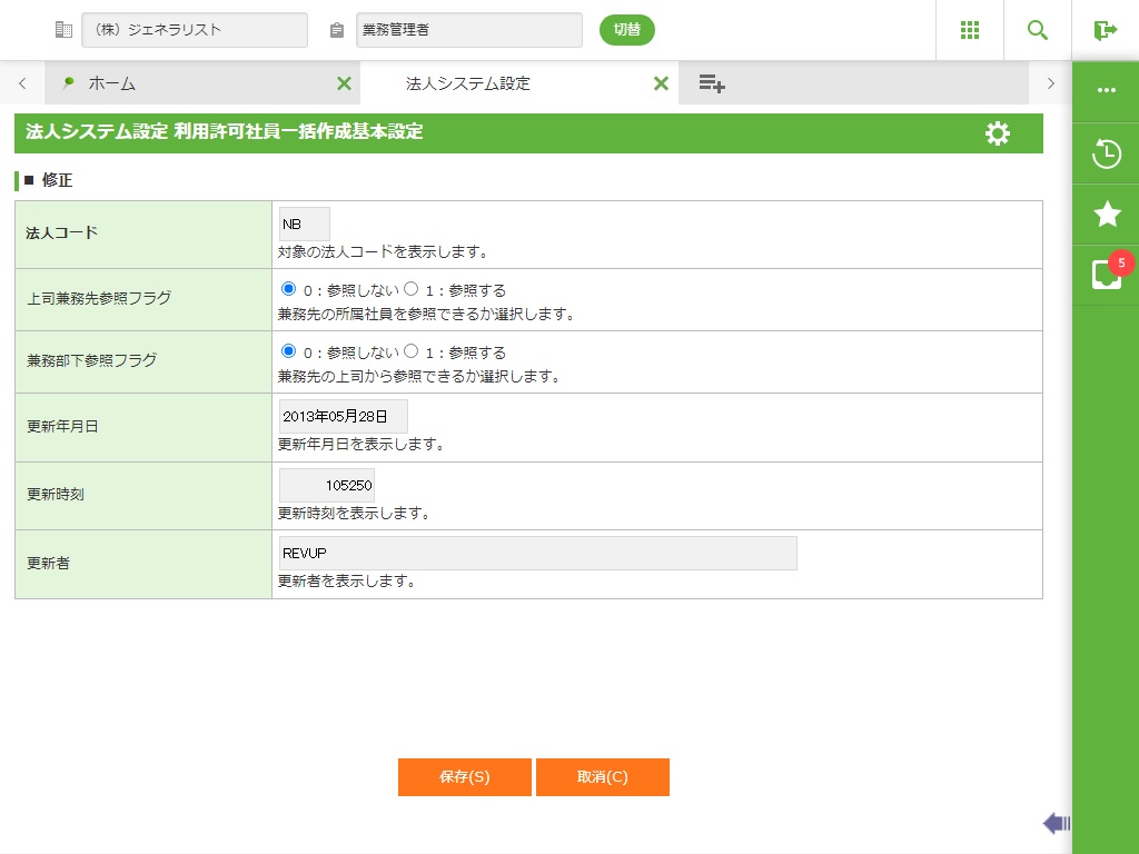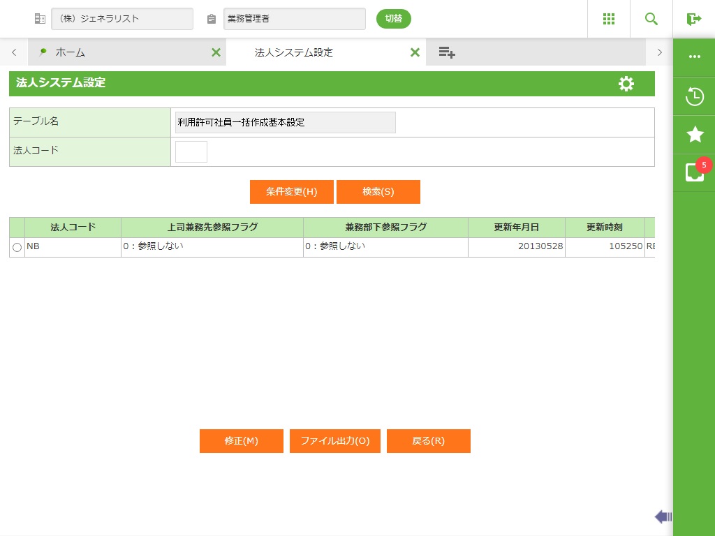 法人コード/上司兼務先参照フラグ/兼務部下参照フラグ |