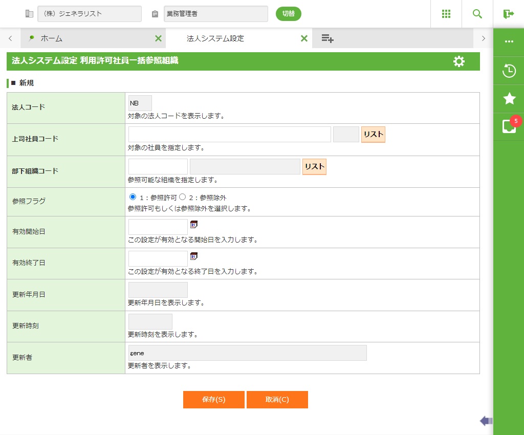 設定した利用者と利用許可社員が利用許可社員リストに存在しない場合、利用許可社員リストに登録します。