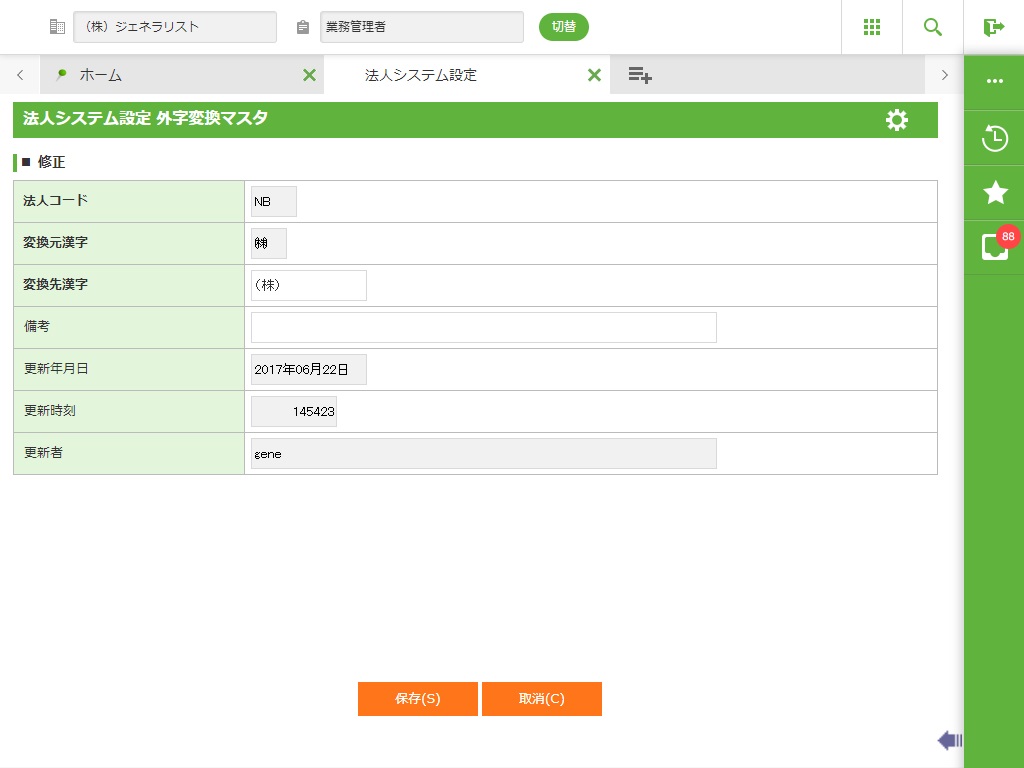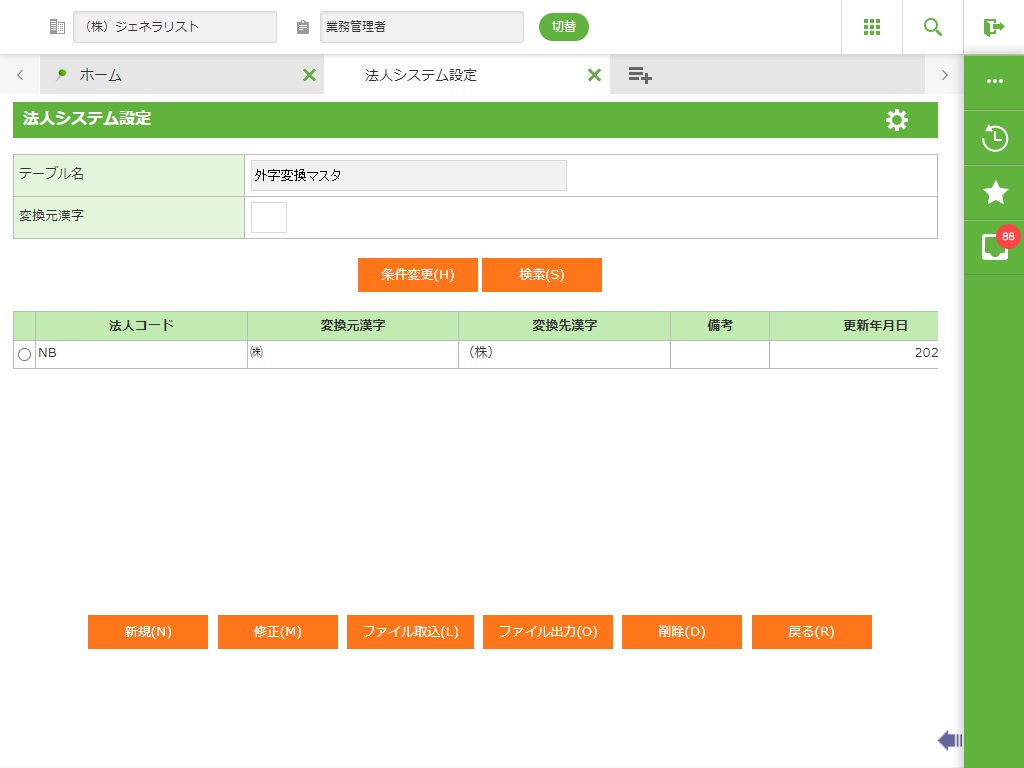 外字変換するデータを新規登録します。詳細画面が表示されます。 |