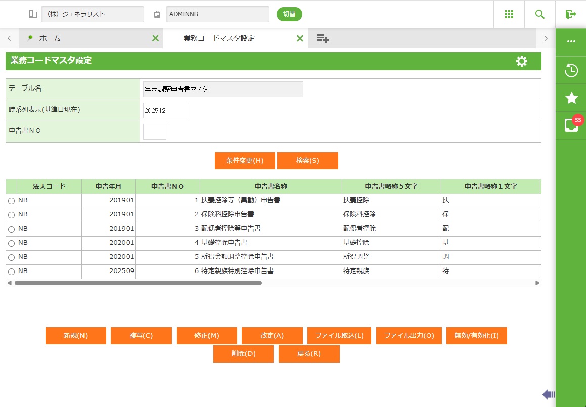 1.1.8.1 年末調整申告書マスタ 一覧画面