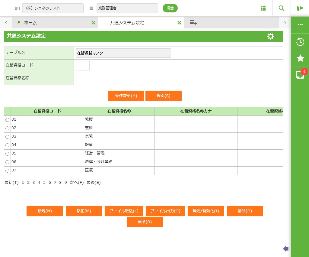 在留資格マスタの情報を新規登録します。詳細画面を表示します。 |