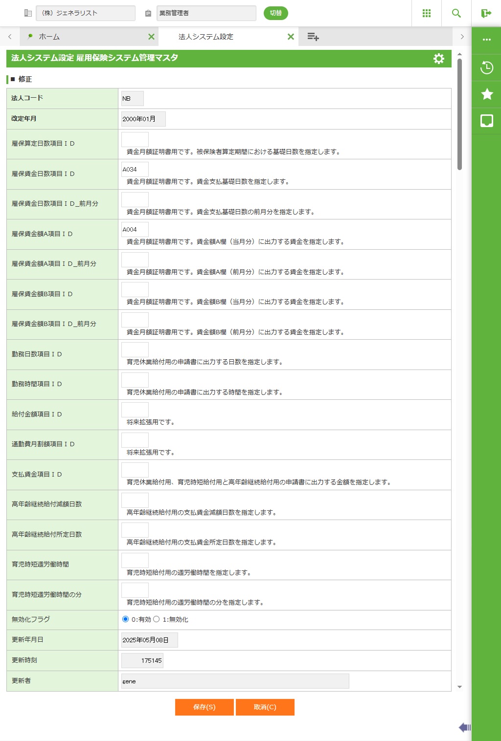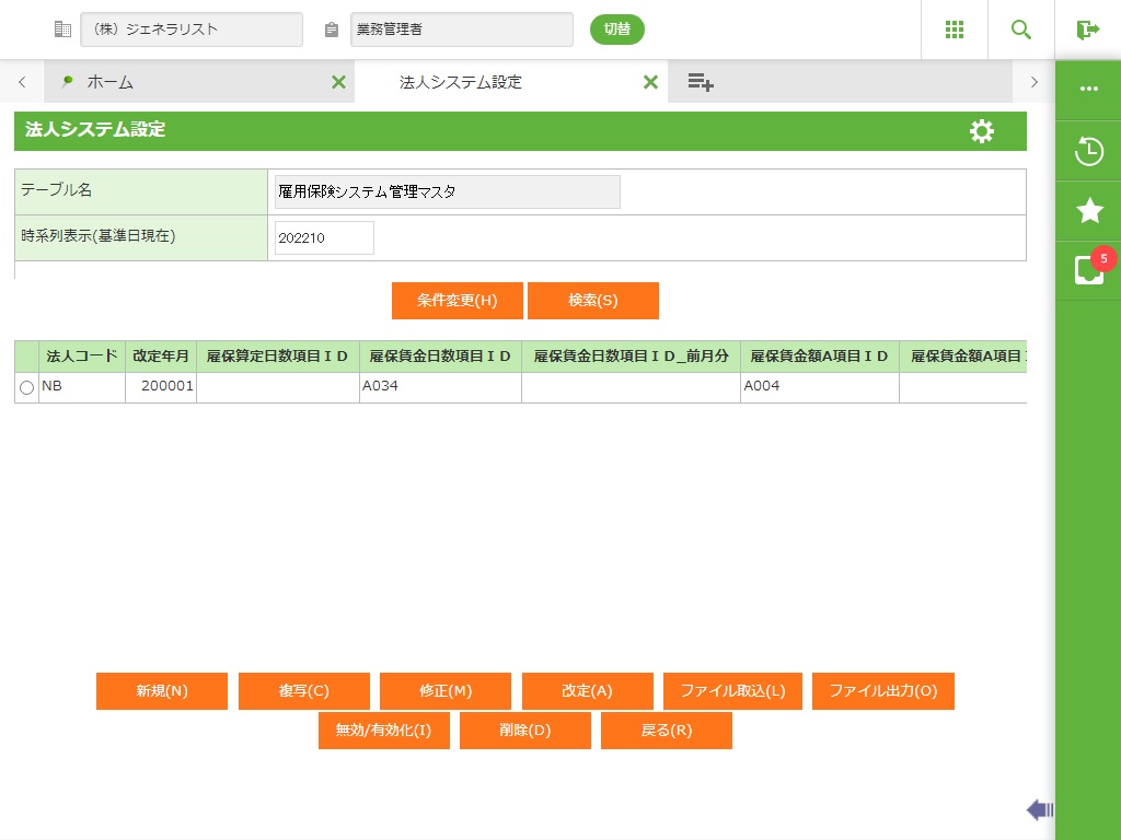 雇用保険システム管理マスタを新規登録します。詳細画面を表示します。 |
