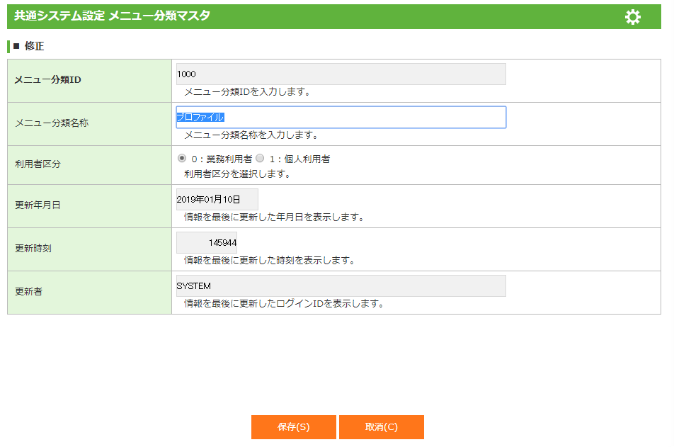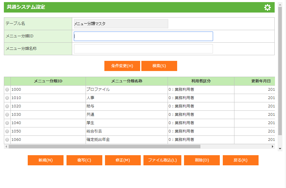 1.1.3 メニュー分類マスタ(共通システム設定)