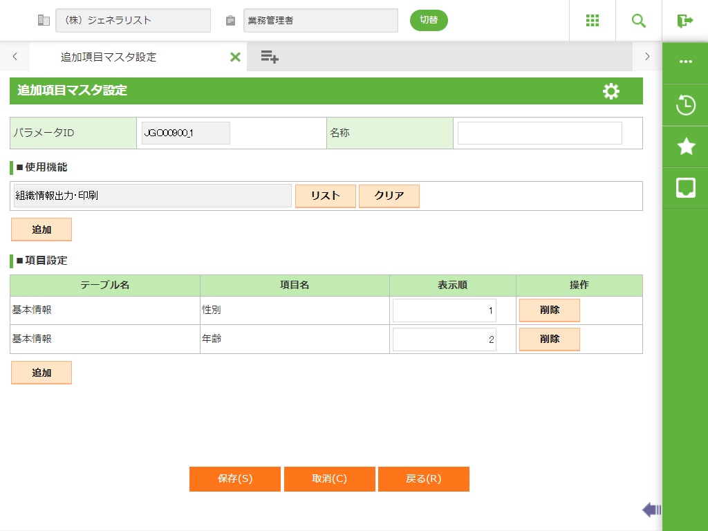 表示されているデータは保存せずに、一覧画面に戻ります。 |