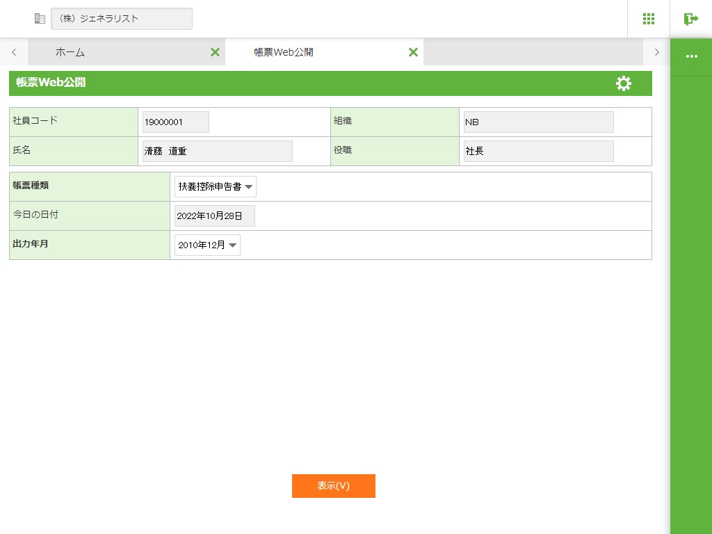 帳票Web公開マスタで帳票を公開する期間を設定することが可能です。この期間の間だけ、個人利用者でログインしたユーザは帳票を参照することが可能です。