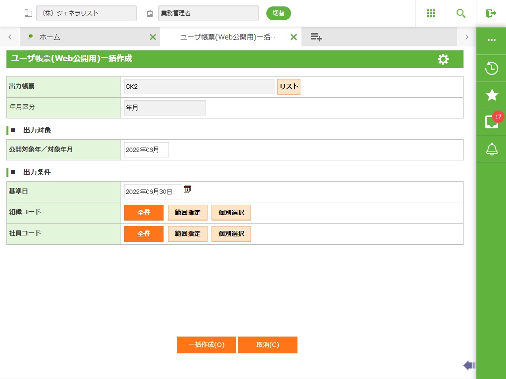 2.6.12 ユーザ帳票(Web公開用)一括作成