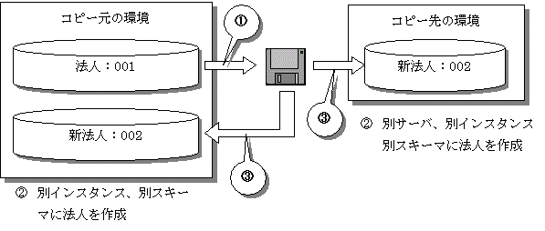 既存の環境を元に、別サーバ、別インスタンス、別スキーマに新しい法人の動作環境を構築する場合の手順を示します。