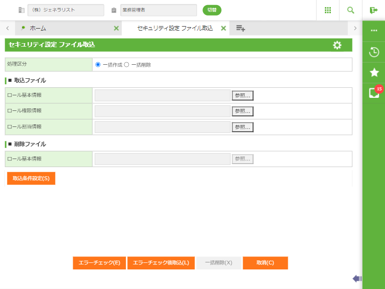 ・取込ファイルに同じロールでひとつでもエラーがあればそのロールは取り込みません。