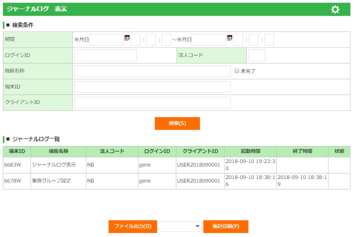 出力条件の設定を行い、表示されているジャーナルログのファイル出力を開始します。 |