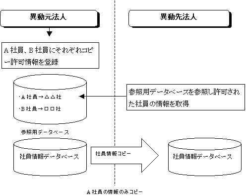 ・ コピー元法人がコピー許可を登録する時、許可法人コードを登録します。したがって許可されていない法人からはコピー許可を登録した社員の情報はコピーできません。