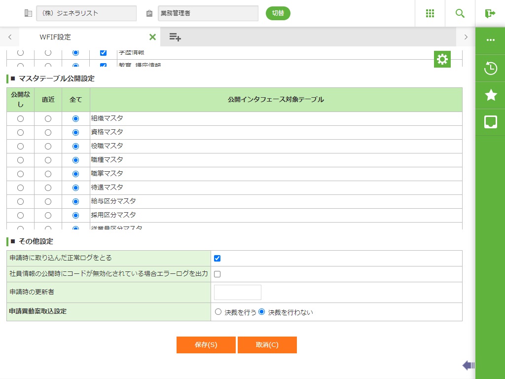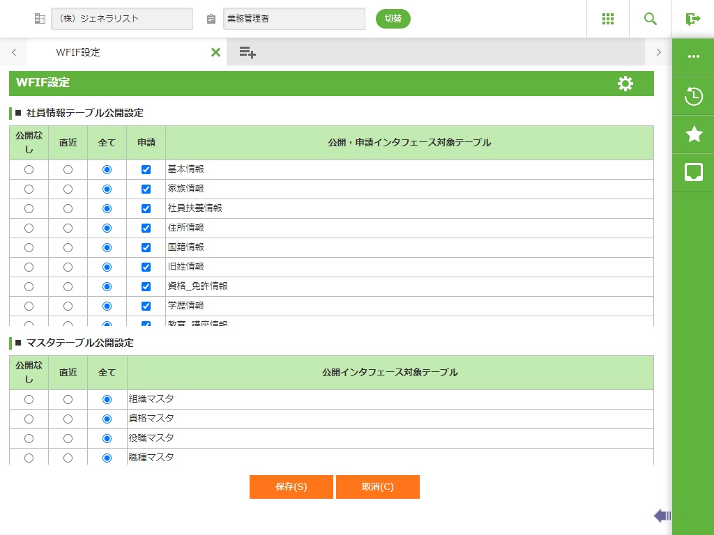 ■ 社員情報テーブル公開設定