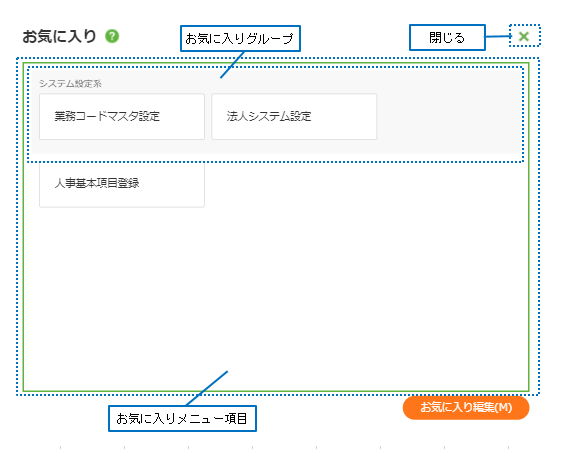 [編集完了]ボタンをクリックすると、お気に入りメニューの編集を完了(編集内容を反映)し、お気に入り画面へ戻ります。