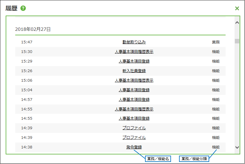 業務名、または機能名をクリックすると、該当する業務/機能を表示します。