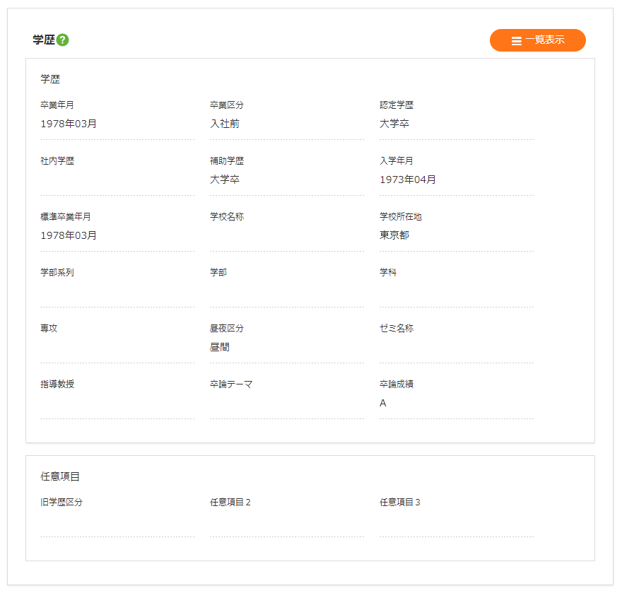 | 卒業区分 | 卒業区分(入社前/入社後)を表示します。 |