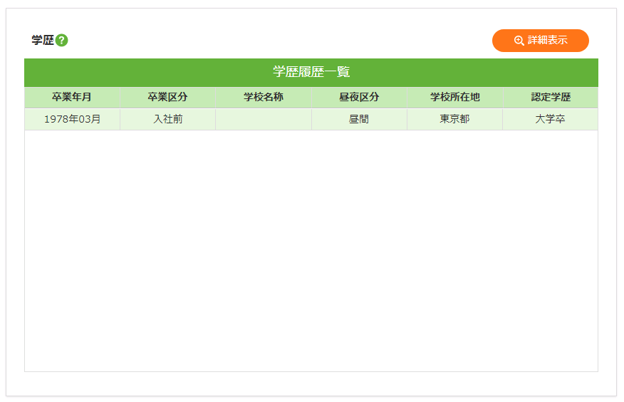 | 詳細表示 | 選択した行の学歴情報を詳細表示します。 |