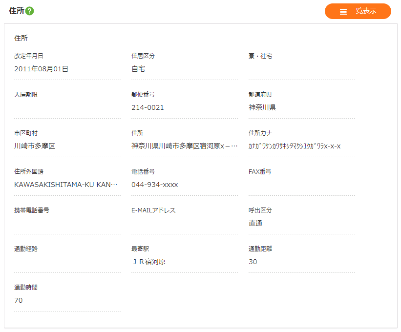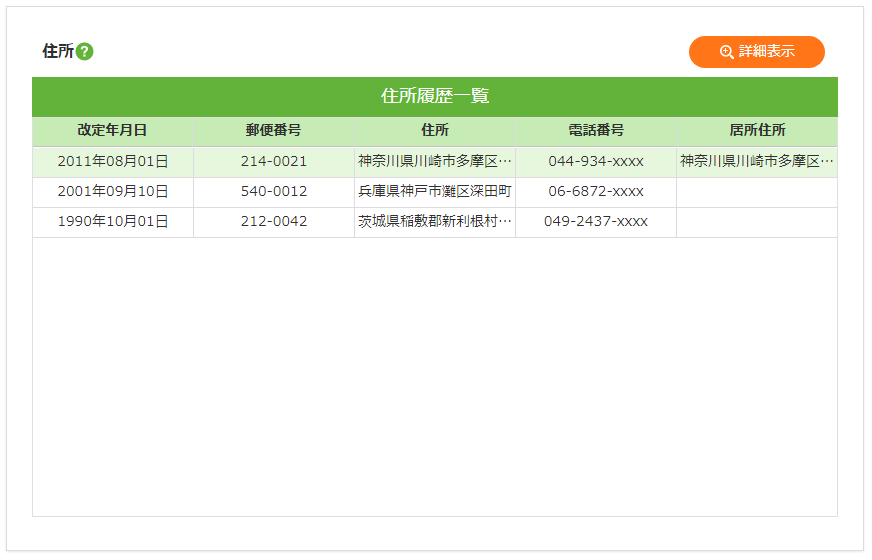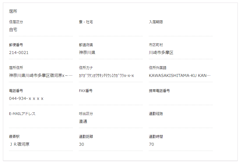| 居所住所 | 居所住所を表示します。 |