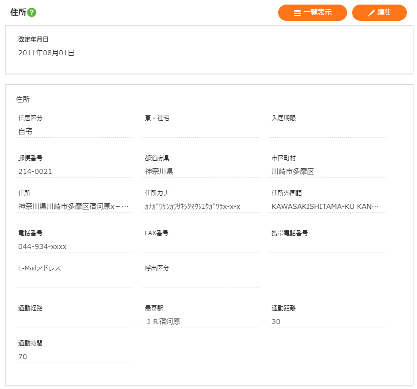 | 住所 | 居所住所を表示します。 |