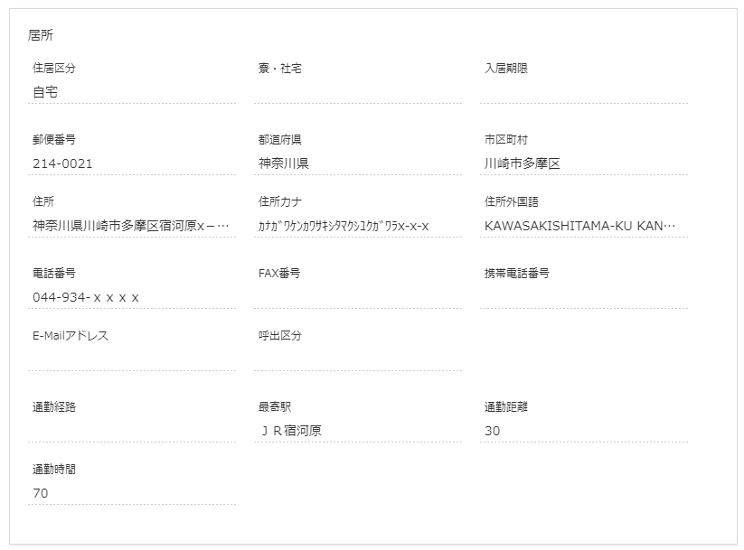| 居所住所 | 居所住所を表示します。 |