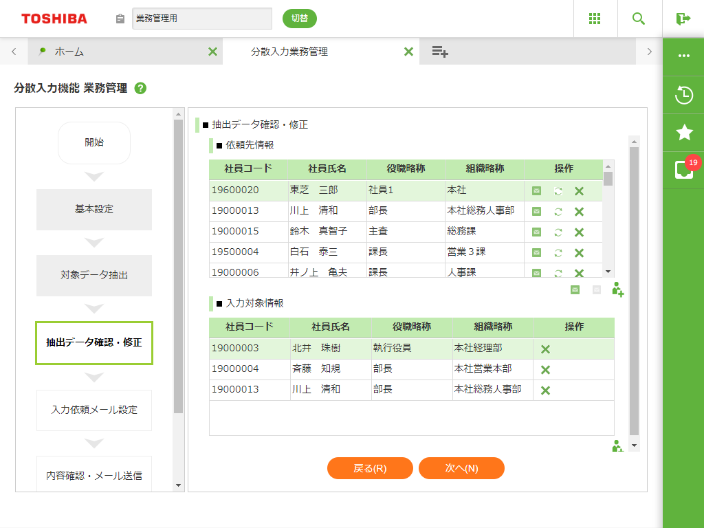抽出した結果を確認します。依頼先の変更や、追加、削除を行うこともできます。