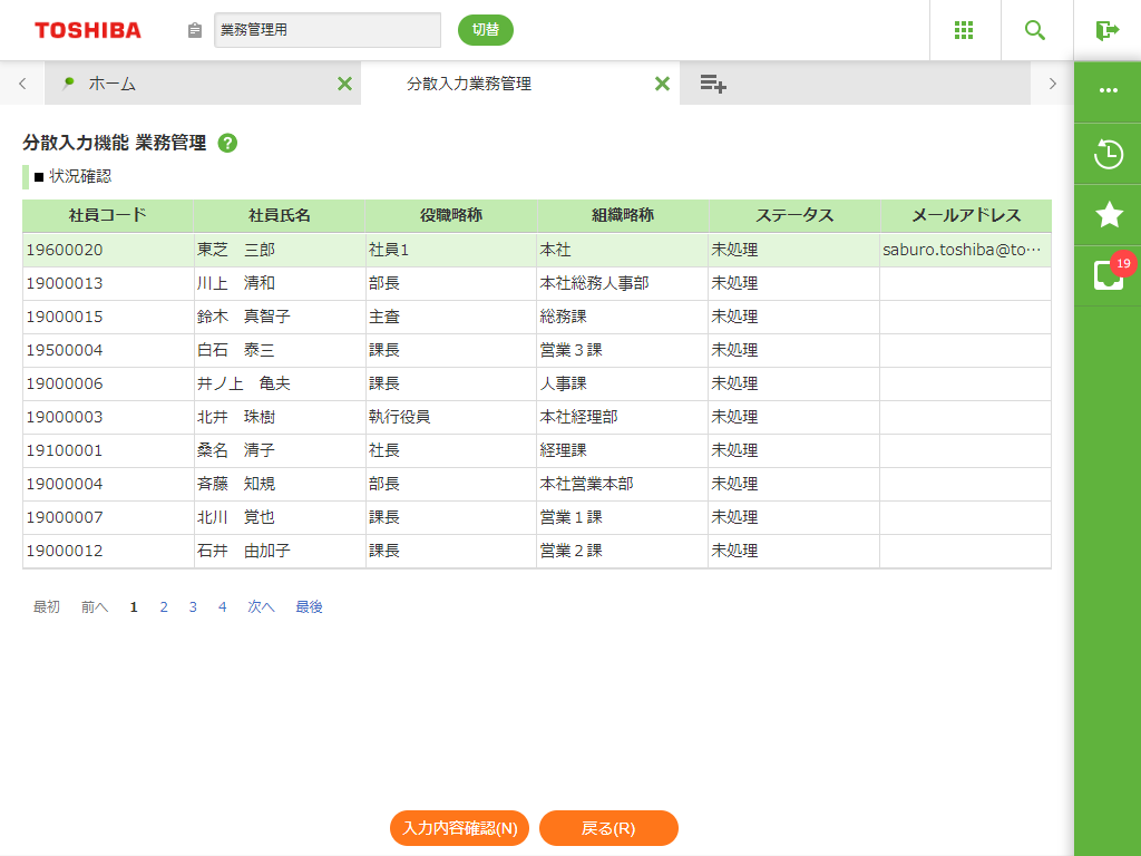 設定した業務の入力依頼した社員の入力状況が確認できます。