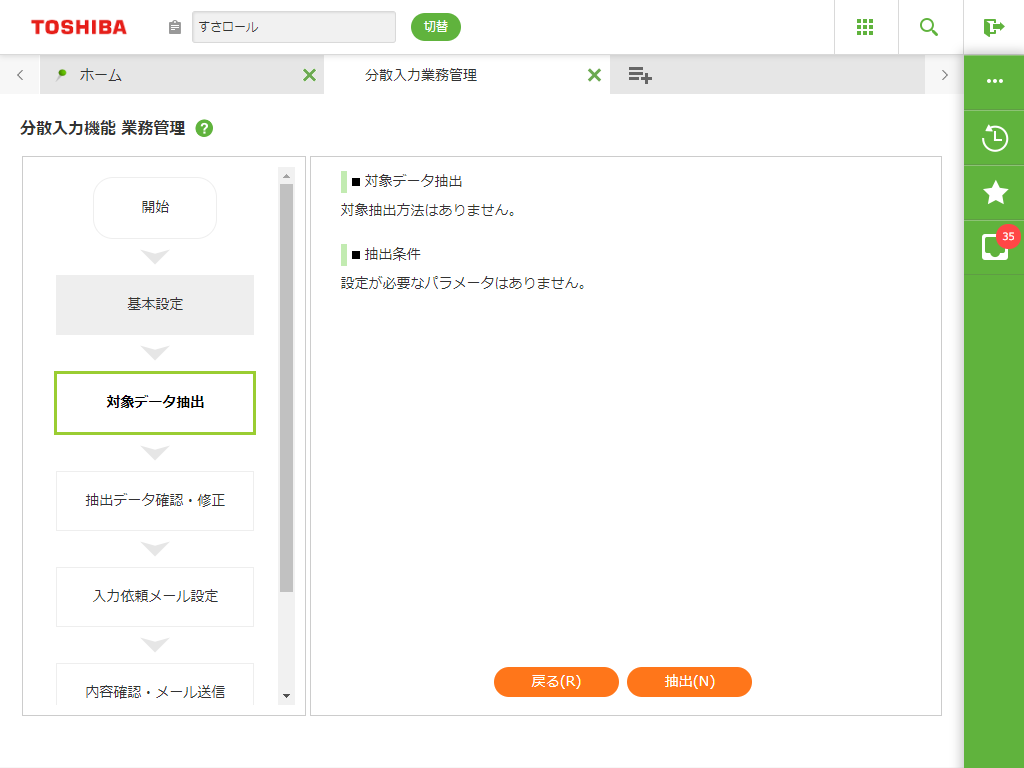 業務テンプレートに設定された抽出ロジックを使用して、対象データの抽出を行います。