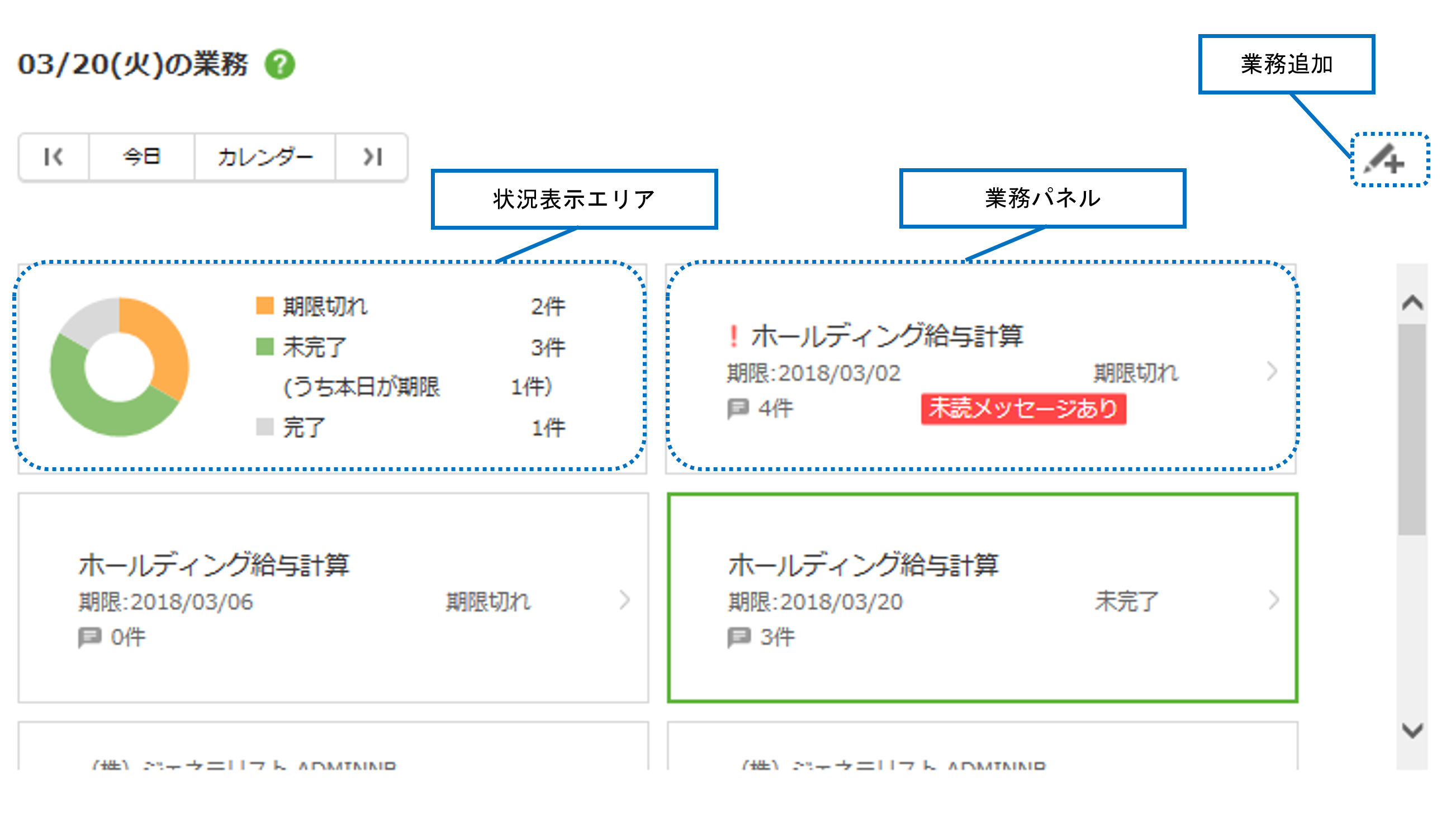 4.期限切れの業務を先に表示する。 - 該当する業務が1件もない場合は、状況表示エリアのみ表示します。