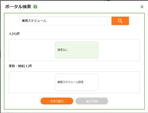 - 「業務スケジュール設定」と入力し、虫眼鏡ボタンをクリックします。